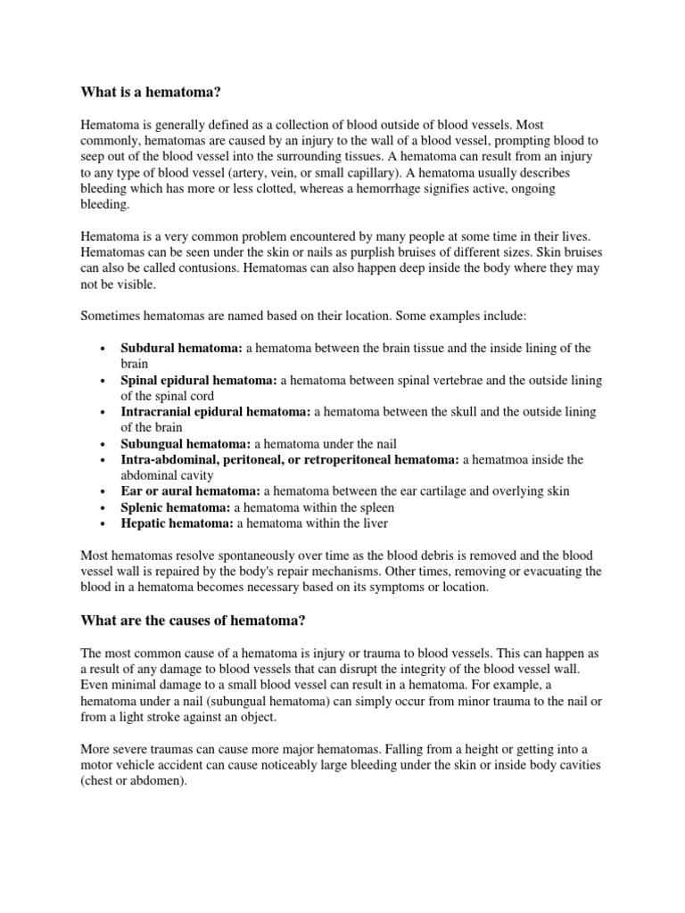 What Is A Hematoma Treatment Epidural Symptoms Bruise Pictures